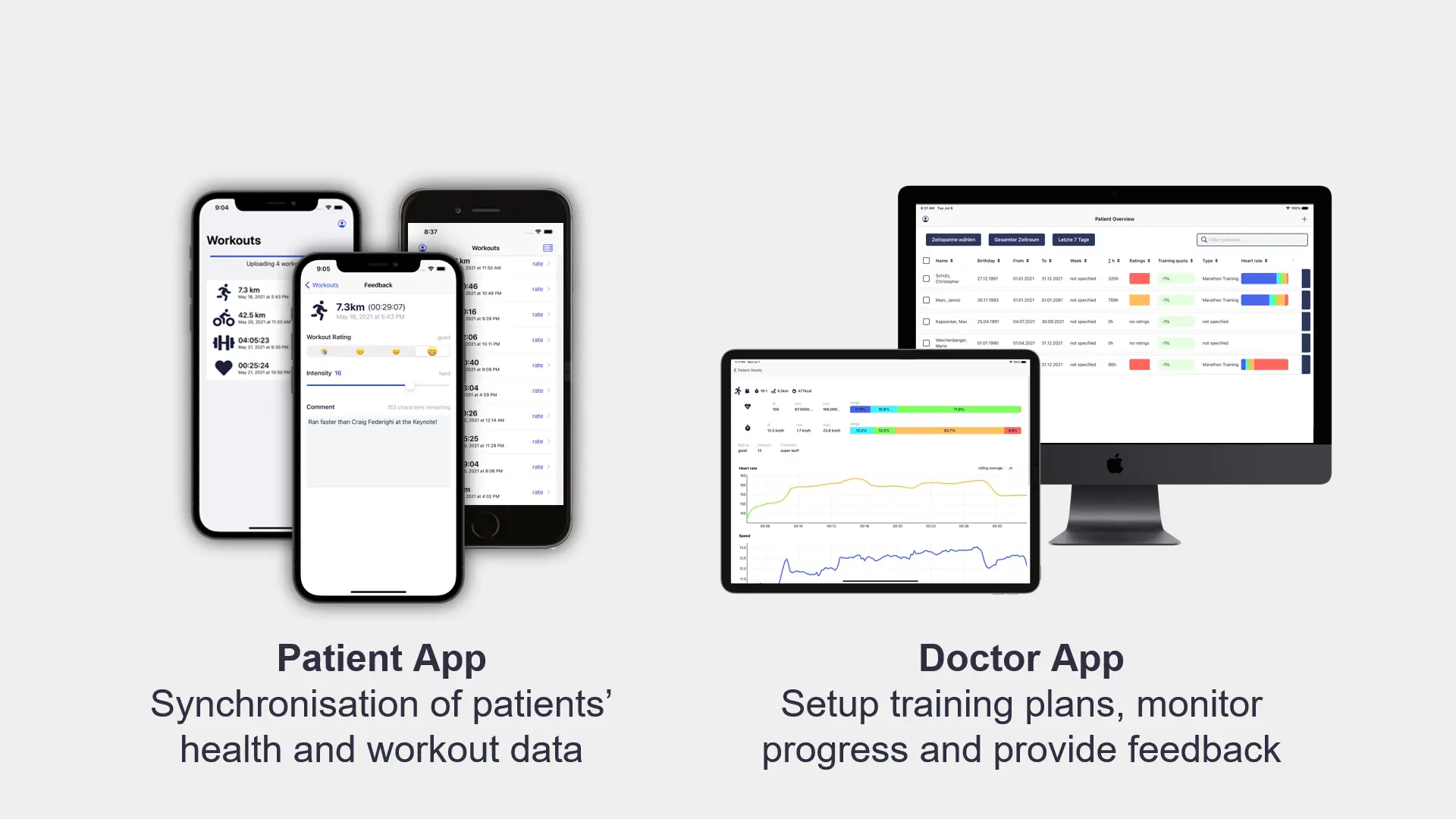 Telemedicine application suite for a sports medicine facility, allowing staff to monitor patent progress and activity between visits